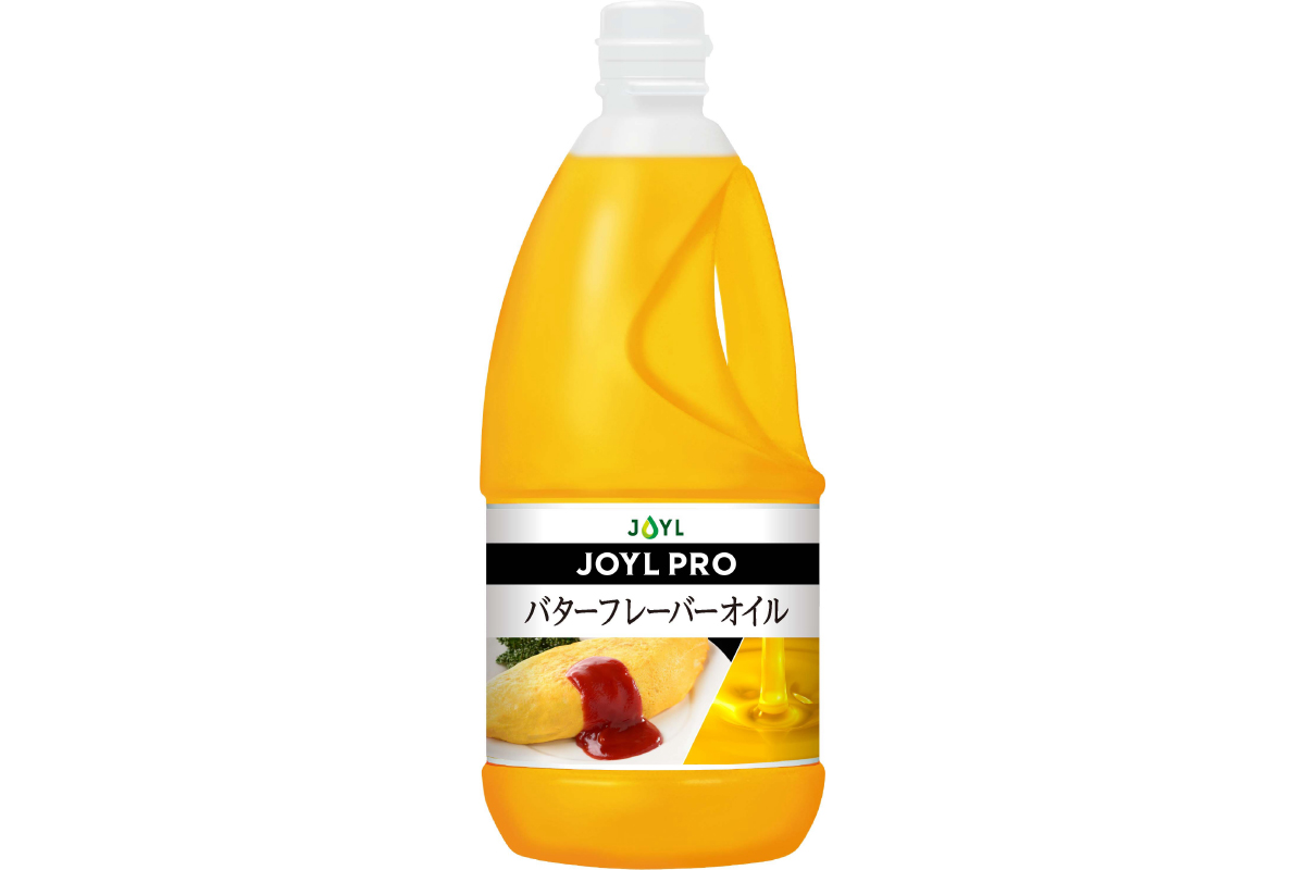 「JOYL PROⓇバターフレーバーオイル」は、バターの香りとコクを再現した液油で、加熱調理時にも香りが持続するのが特長です。さらに冷蔵保管の必要がなく、バターよりも賞味期限が長いため、在庫管理に便利な他、計量時にカットの必要がなく、溶かさずボトルから注ぐだけですぐにご使用いただけるのも嬉しいポイントです。