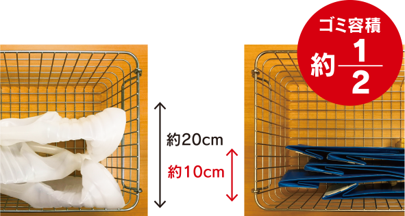 廃棄時に容器を小さくたためるため、ごみ容積の削減に貢献